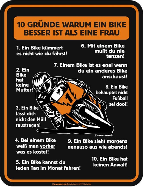 * Motorrädern ist es egal, wenn Du nach