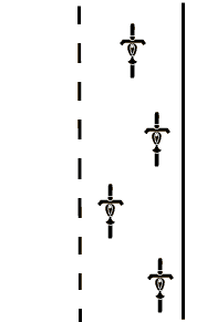 • fährt versetzt mit einem Abstand von ca. 10 m nach vorne und hinten